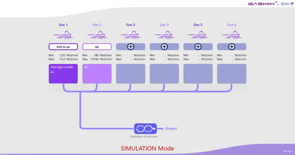 GRack can be configured with several standard gas inlets and one diluent, using multiple Mass Flow Controllers. Typical configurations include 2 to 6 channels, depending on the application and required mixtures.