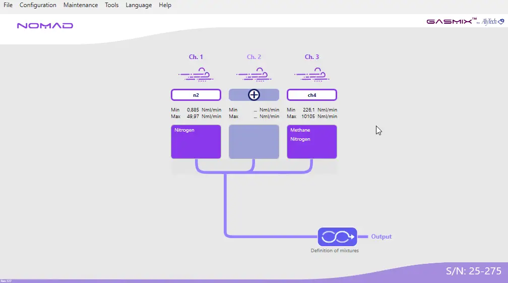 Standard gases, sequences and projects are created and stored directly in the GasMix™ software: library of gas standards, multi‑point MFC calibration tables, user profiles, analyzer control parameters and more. NOMAD is compliant with ISO 6145‑7 and provides the same rigorous metrology and traceability as benchtop GasMix systems.